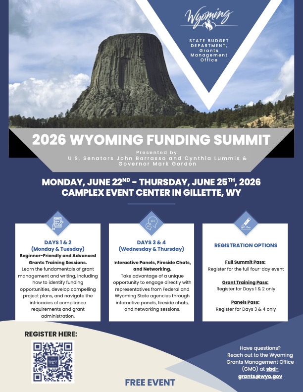 The 2026 Wyoming Funding Summit will be held June 22-25, 2026. Click